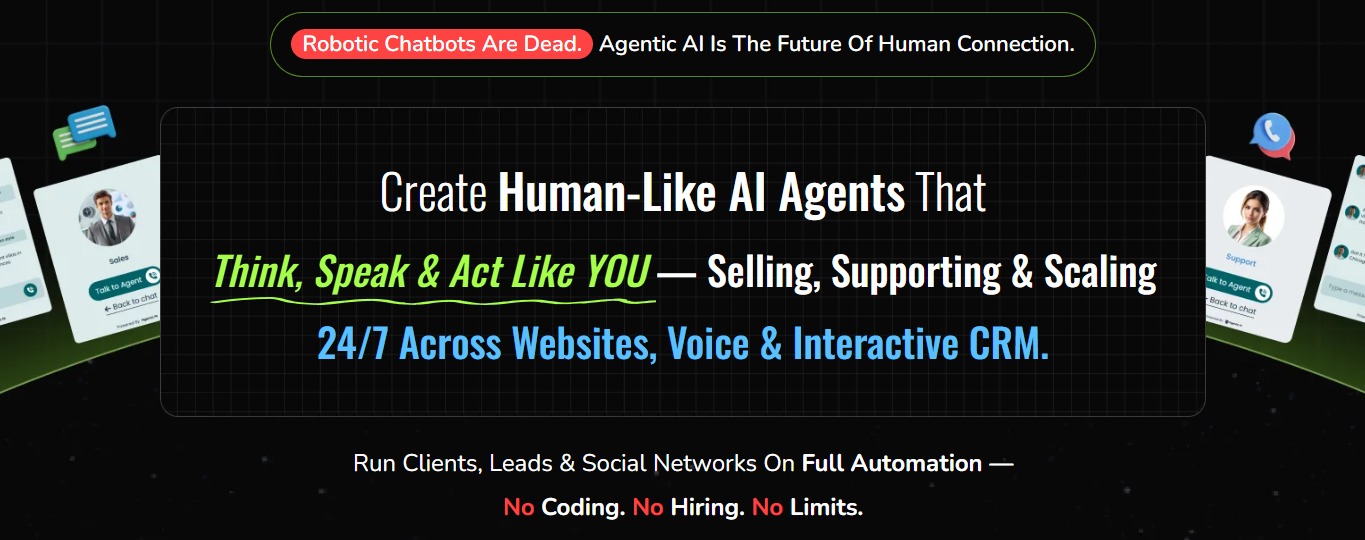 A NEW & The First Typical All-in-One AI Software That Lets You Create, Customise, and Deploy AI Agents that Talk, Sell, Support, and Close Deals Just Like Real Humans — 24/7 across Websites, Voice & Interactive CRM, without breaks, salaries, stress or paying monthly fees...